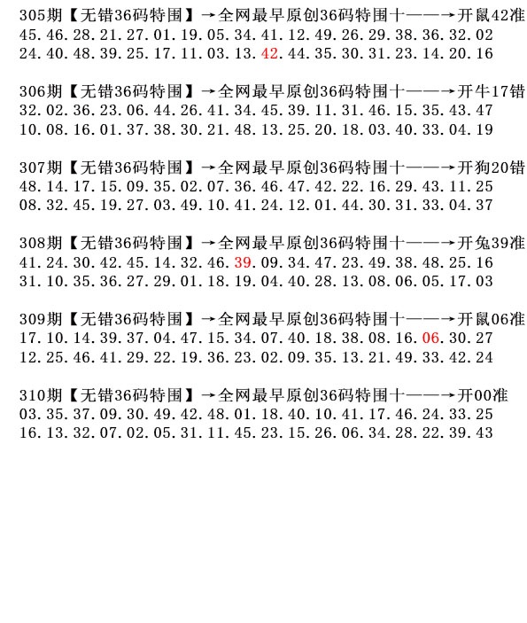 | 305期6肖 | 龙猪鼠蛇羊狗 | 鼠42中 |