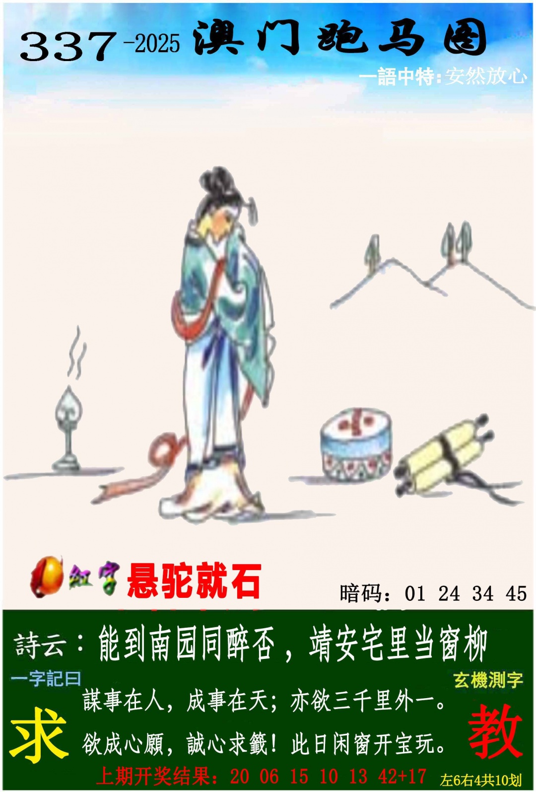 | 337期6肖 | 马蛇鼠狗兔羊 | ?00中 |